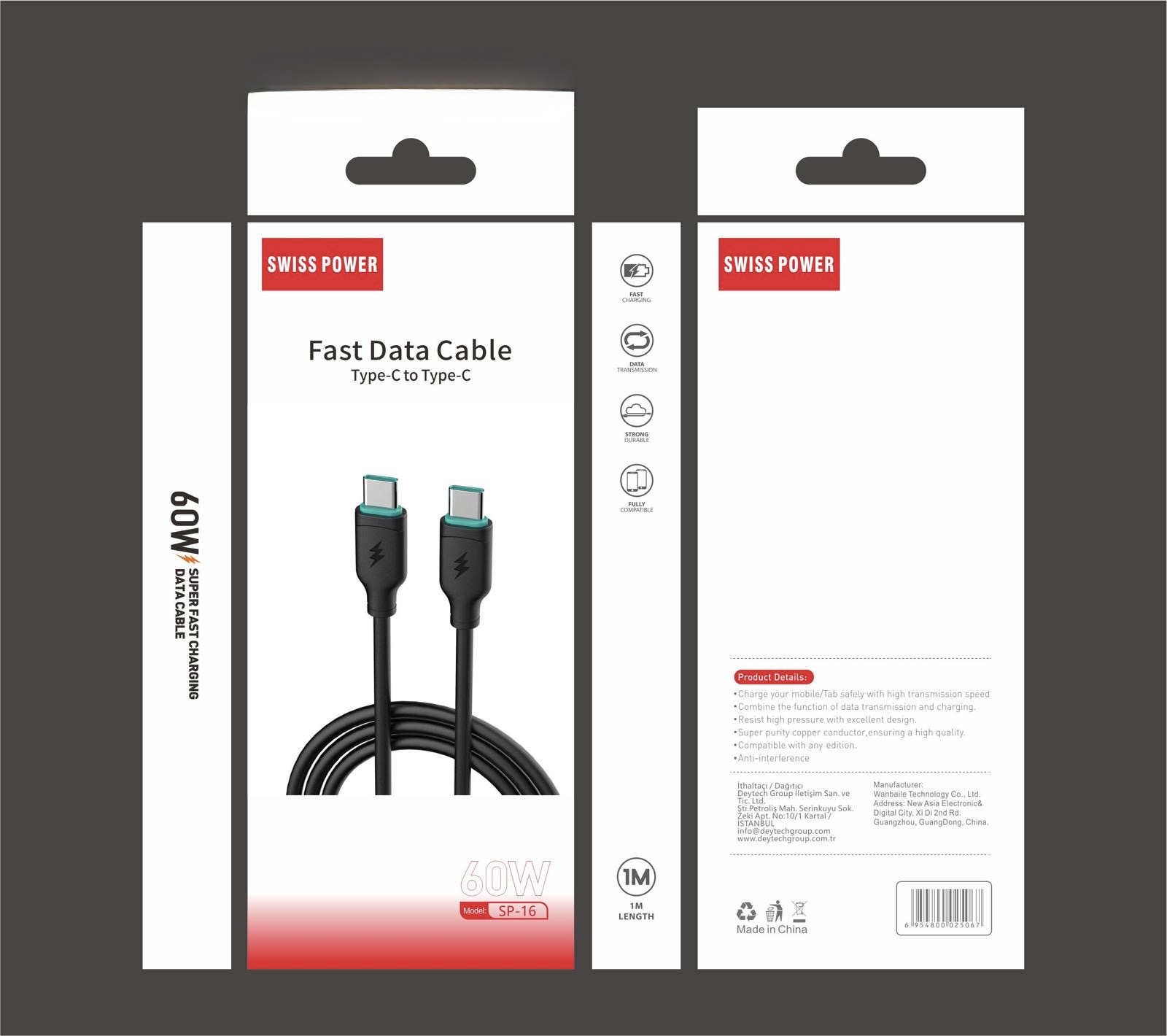 Güçlü ve Dayanıklı Yapısıyla Swiss Power 60W Type-C to Type-C Şarj-Data Kablosu